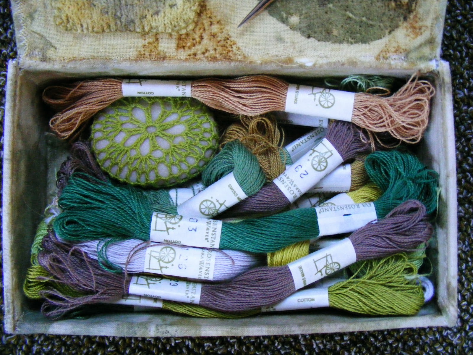 you're maybe thinking that you've seen this incredible box of magic before? i know i have, right here. i just had no idea that i was the lucky friend to receive it. the leaf pattern is made by - well, leaves, plant dyed. this is a repurposed, reused, thrifted, ecologically sane and skillfully decorated treasure box. i so adore it. thank you, mona!