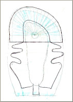 the picture above is of my own, good old shoes, made in 1997. i always use them with these thick, felted socks inside; to me, they're part of the shoe. they are soft, comfy and i simply love them. based on my original 11 year old, several times altered, water damaged drawing, i have made a kind of template as a sort of guideline - sort of. you'll find it at the bottom of this post. i had to scan it in two operations as it was so big, then paste the parts together on my computer, so this adds to the imperfection. you should go for the thick, black lines and not pay too much attention to the rest :)